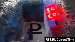 Российский рубль продолжает падать. Доллар в среду вечером достиг нового исторического максимума и на закрытии торгов поднимался до 82 рублей, курс евро перевалил за 90 рублей. С начала дня обе валюты подорожали более чем на 2 рубля.