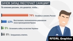 Лишь 5% опрошенных согласны с тем, что санкции призваны остановить войну, разрушения и гибель людей на востоке Украины.