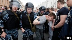12 июня суд Москвы арестовал на 30 суток оппозиционного политика Алексея Навального. Его признали виновным в двух административных правонарушениях за "Повторное нарушение правил организации митингов" и "Неповиновение законному распоряжению сотрудника полиции".