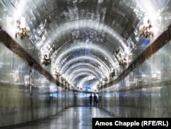 Переход между двумя станциями метро. После того, как землетрясение разрушило Ташкент в 1966 году, планировщики решили уменьшить глубину, но увеличить прочность метрополитена. Тоннели прокладывалась в нескольких метрах под улицами города.