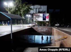 Многие станции метро декоммунизировали и переименовали после распада Советского Союза в 1991 году. Станция "Сквер Амира Тимура" раньше называлась "Октябрьской революции".