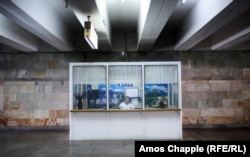 Кассир на входе в станцию метро. Поездка стоит 1,200 узбекских сумов, около 0,15 долларов США.
