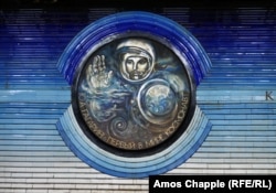 Портрет Юрия Гагарина, первого человека в космосе, на станции "Космонавтов".