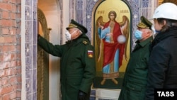 В парке "Патриот" неподалеку от подмосковной Кубинки завершается возведение главного храма Вооруженных сил России. По данным "МБХ Медиа", его украсят изображения серпа и молота, портрет Сталина, панно с групповым портретом министра обороны Сергея Шойгу, президента России Владимира Путина, Валентины Матвиенко, байкера Хирурга и других. Среди витражей – орден Великой Отечественной войны, на мозаике – посвящение аннексии Крыма.