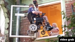 Городские службы белорусского города Мозыря выдали специальный гусеничный подъемник колясочнику Виталию Ковалеву. В конце лета мужчина получил широкую известность после того, как снял на видео, как спускается на улицу на коляске из окна второго этажа при помощи крана-лебедки. Проехать по лестнице было невозможно из-за отсутствия подъемника, и из-за этого Ковалев месяцами не мог выбраться из квартиры.