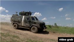 Пока журналисты общаются со стрелками, рядом постоянно слышны выстрелы из оружия более крупного калибра. На полигон, ведя огонь по мишеням, влетает "Козак", прошедший бои бронеавтомобиль. Как и его экипаж.