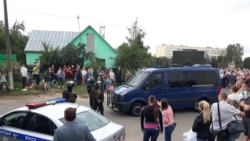 Вслед за "скорой" из ворот изолятора выехали четыре зеленых УАЗа с силовиками в камуфляже, балаклавах и масках. Люди провожали их криками "Позор!" и "Фашисты!".