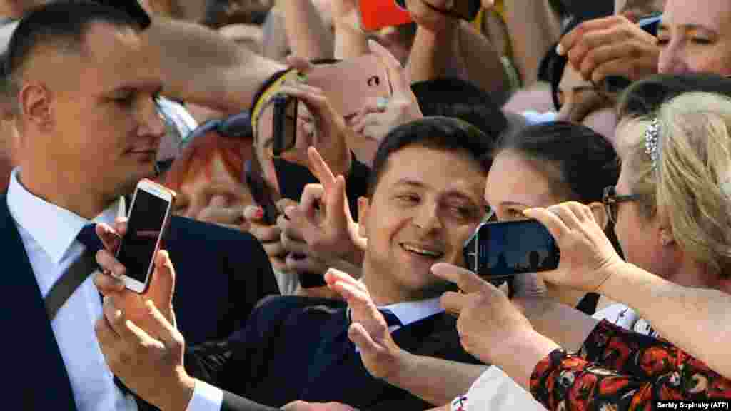 Селфи, булава и президентская печать вверх ногами. Фото с инаугурации Зеленского